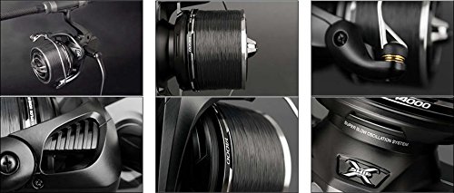 -. Feature : Surfcasting and carpfishing reel. Gear Ratio: 4.3:1 / Mono Line Capacity (lbs/yd): 12/600, 16/440, 20/330 / Line retrieve per crank: 41 inch / Weight: 21.90 ounce, max dragforce: 44 lbs / Bearings: 1 S A RB and 3 shielded stainless steel and 1 roller bearing