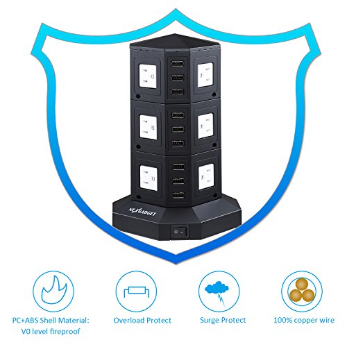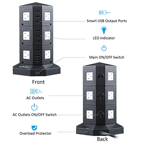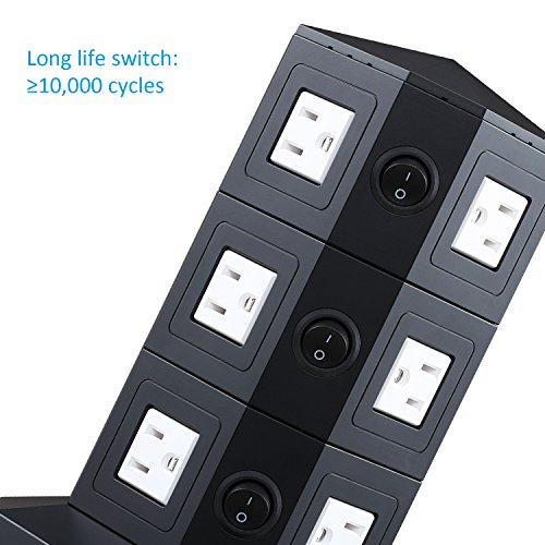 - EASY TO USE: 12 outlets distribute in four sides of power strip, and enough space between each outlets. A individual ON/OFF switch of each layer avoids power leakage and prevents frequent plugging, more energy efficient and safer.