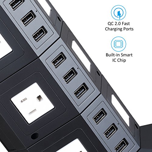 - 9 SMART USB PORTS: With smart IC installed, each USB port intelligently identifies your device and seeks to maximize (each 2.4A max, total 8A) its charge speed, and stops automatically when charge finished.