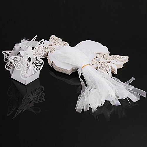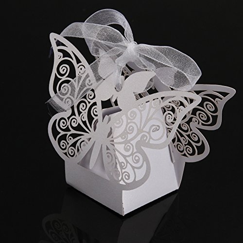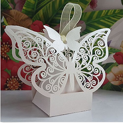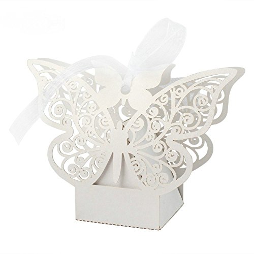 Foto4easy 50 PCS Big Butterfly Laser Cut Candy Gift Boxes with Ribbon Wedding Party Favor