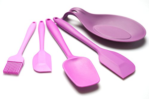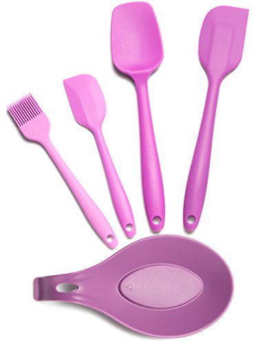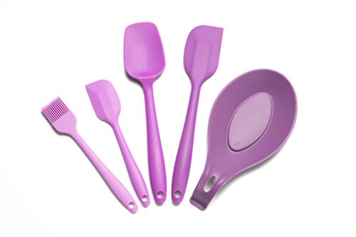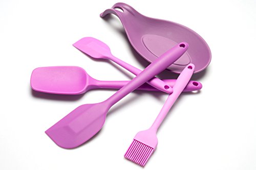 - Feature : PURPLE GRADIENT DESIGN - VIXIA Exquisite Silicone Spatula Set contains a long handle spoonula and a long handle spatula which can be used for stirring directly in hot pots and pans, a short handle spatula for more precise mixing, stirring and decorating or emptying small jars and a brush for basting and glazing. Last but not least, we added another helpful product, offered COMPLETELY FREE: a large spoon rest, ideal to hold your cooking utensils while in use. / HIGH QUALITY STANDARDS - With a durable steel core and made of premium FDA approved 100% BPA free silicone, our products are perfect for non-stick cookware and bakeware. They can be used in a wide range of temperatures, from minus 40°F up to 480°F. / HYGIENIC SOLID DESIGN - Seamlessly manufactured and no crevices to allow bacteria to grow, unlike the plastic handle kitchen tools, VIXIA utensils are easy to clean and provide a healthful cooking. / EVERYTHING YOU NEED IN ONE SET - VIXIA utensils can be used for mixing, stirring, scraping, lifting, flipping, spreading, basting and glazing. / 100% SATISFACTION GUARANTEED - If, for any reason, you are not completely happy with our products, just let us know. We will immediately arrange a replace or 100% refund (no question asked)! No risks, no hassle!