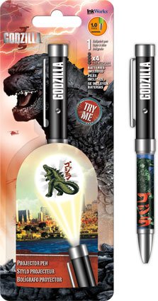 -. Feature : You Love The Godzilla Movies / Now Have a Piece of The Movie With The Godzilla Projector Pen! / Press the Button to Project the Godzilla Logo on Any Surface and Use the Pen on the Other End For Writing or Drawing / Projection Pen is 1.0 mm Ballpoint with Black Ink, Batteries included / Perfect For Your Back to School Supplies