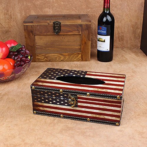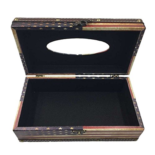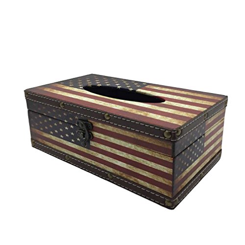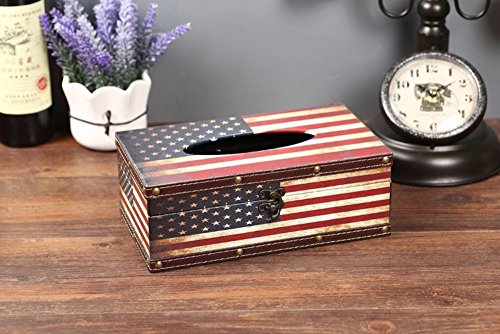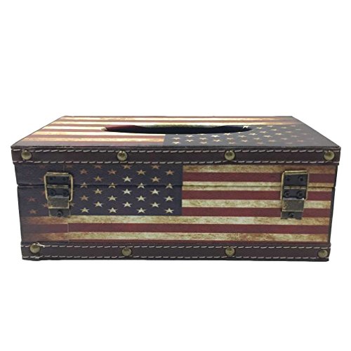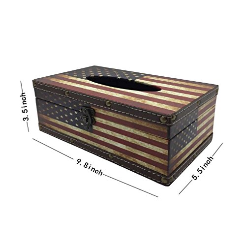 Dreamseden Vintage Wooden Tissue Box Cover Holder - American Flag Style Classical Waterproof Napkin Box for Home Office Room Decor