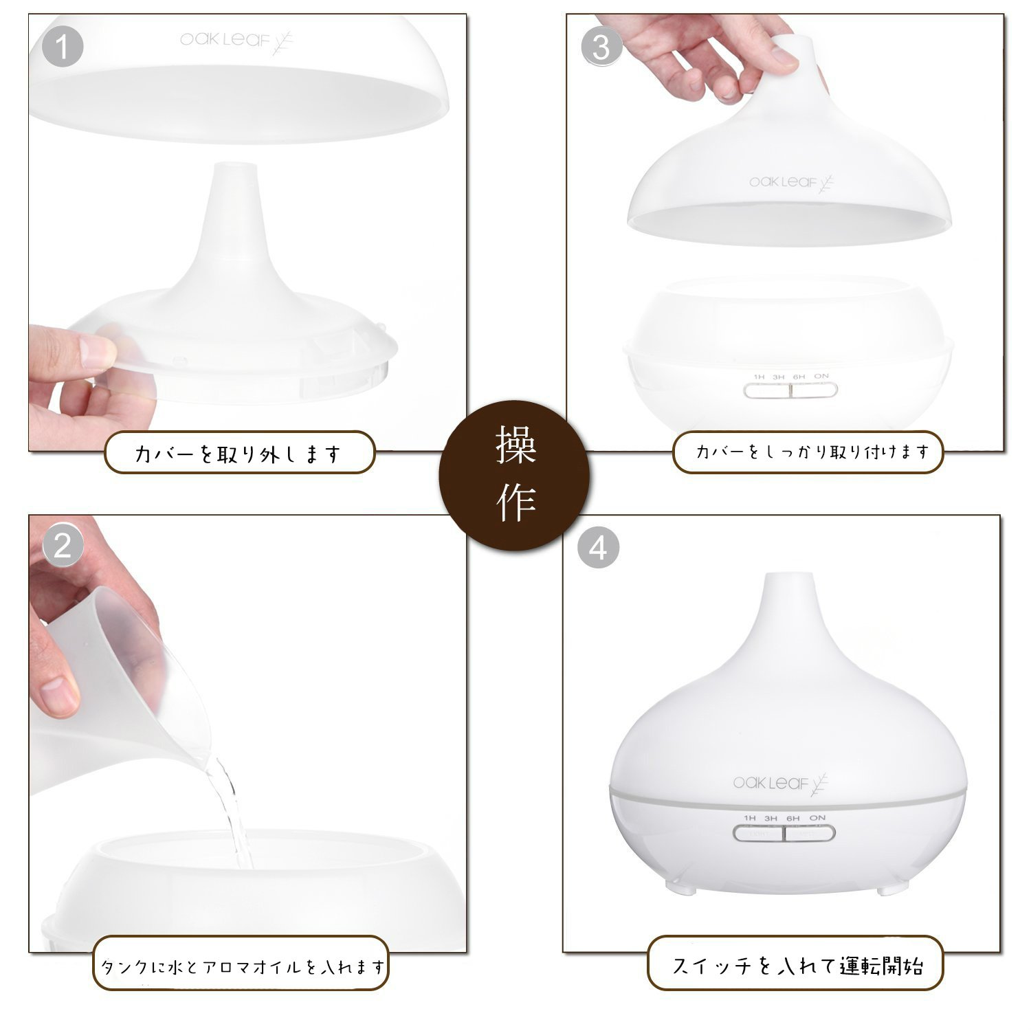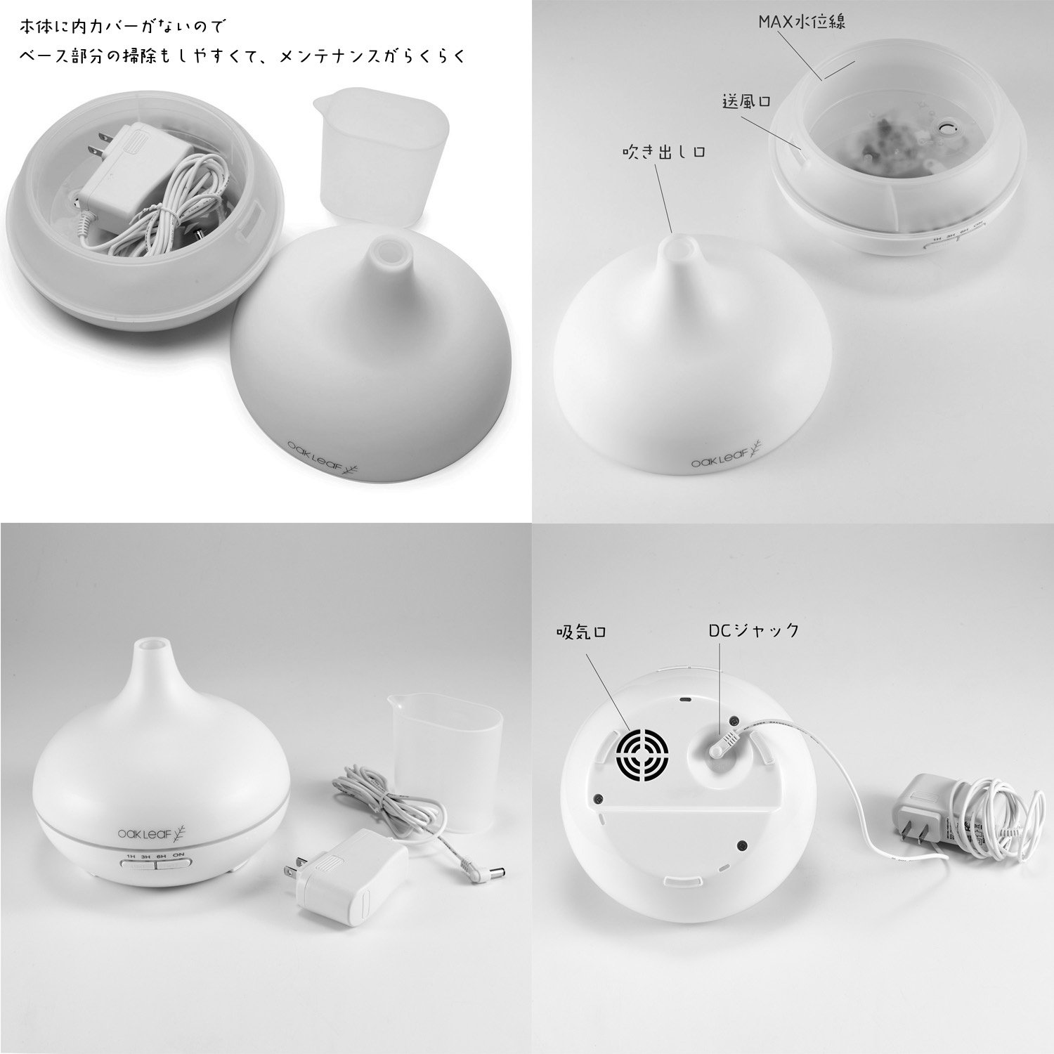 First, this shape leads people to healing. And there will be no doubt that the mist that is emitted plenty and the light of the color that calms down will produce the night. The size was a little bigger than expected. The amount of water can be increased by that much, so we could considerably cut down on washing water. But, if I made the upper lid part a little smaller, I felt a little that 4 to 500 ml could pool the water. I bought white, but wood grain tone is also stylish. I think that both are correct answers.