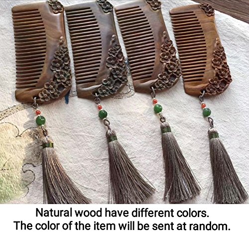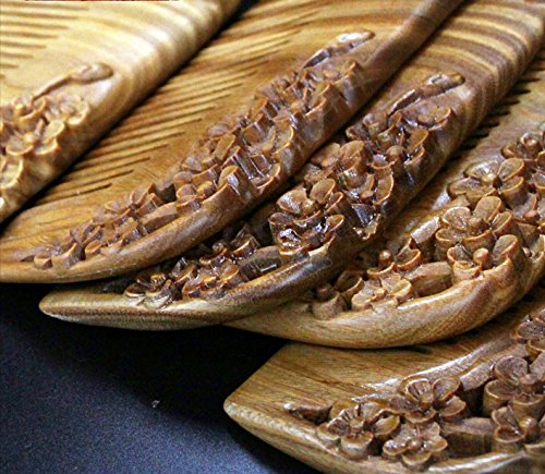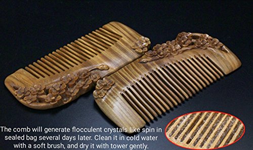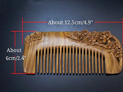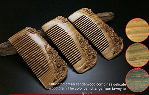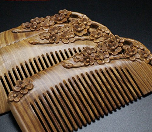 JMJ Natural green sandalwood/verawood handmade wood comb, hair comb, one sided carved - no snags, no tangle, no static (Plum blossom)