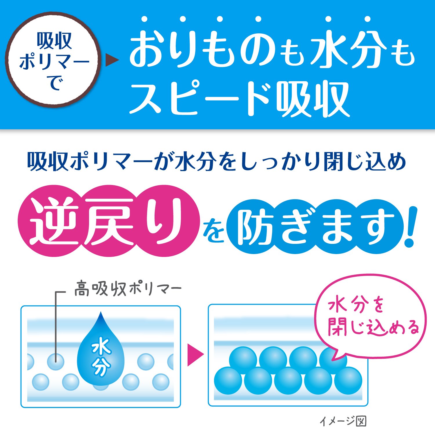 Speed absorbing polymer firmly handles & moisture care.