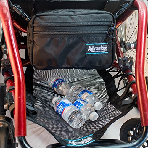 Studio : Advantage Bag Company Publisher : Advantage Bag Company Binding : Health and Beauty Product Description We designed the original Catch-All, Wheelchair Under Seat Cargo Net for use with Rigid and Folding Wheelchairs Securely attaches with convenient Velcro hook and loop to bottom horizontal and rear vertical frame tubing. Forms a net shelf under the Wheelchair seat. A great way to utilize wasted space. Customers have said when it is loaded it helps keep tipsy chairs upright. All seams are double stitched and taped, stress points are triple tacked double stitch, YKK Zipper and Pull Ring, Military Spec Hardware, heavy duty Velcro Hook and Loop. Our construction guarantees our products have longevity giving years of use. Our products are warrantied for 1 year. Our customers have used our products daily lasting for years. Made in the USA Material: Nylon Mesh 0