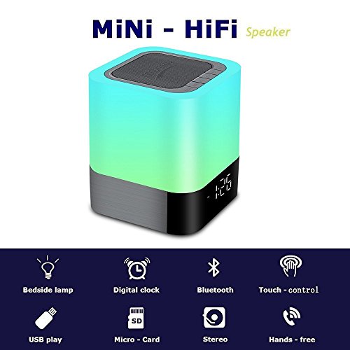 -. Brand : HOMPOT -. Color : White -. EAN : 0795410984179 -. Feature : THE TRUSTWORTHY BRAND HOMPOT: 4 IN ONE Super Multifunctional Night Light Bluetooth Speaker : Touch Sensor Night Light +Bluetooth 4.0 Hifi Speaker + Digital Alarm Clock + MP3 Player. Connecting with Bluetooth 4.0 super easily and fastly , compatible with all Bluetooth devices. Support flash drive/micro SD Card input, AUX input. Wonderful for playing music while cooking, doing exercise, camping ,and outdoor activities. / BLUETOOTH SPEAKER+ ROMANTIC COLOR NIGHT LIGHT: It with 48 colors change LED lights, touch activation and full control of brightness, Higher quality sound with deep foundation (quality 5W sound driver, aptX lossless technology), easy to connect any Bluetooth-enabled phone and tablet. Built-in microphone for hands-free speakerphone. At night in the bedroom to listen to audio books, or play music in the cooking, the product carry, anytime, anywhere to light your every day! / LARGE CAPACITY BUILD IN RECHARGEABLE BATTERY: USB rechargeable wireless bluetooth speaker is build-in 4000 mAh Li battery, super long playing, super long lighting. Up to 12 hours Lighting time and 10 hours music play (depends on Volume/Brightness). Easy charge by USB cable with 6-10 hours charging time. / THE BEST GIFT CHOISE:The wireless night light bluetooth speaker, multi functional creative and modern design make it the best gift choice on any occasions, such as used for Yoga music player, in friends party, go camping outside with family and friends, Christmas Day , Easter Day , Thanksgiving Day , Birthday, anniversary, Mothers Day , Fathers Day , Halloween , wedding, etc. / HIGHEST QUALITY AND 100% GUARANTEE: We offer you 100% risk-free satisfaction guarantee, and source the highest quality material with the most durable structural support. You can rest assured to buy.So, what are you waiting for? Come and bring this magical gift home! -. Label : HOMPOT -. Manufacturer : HOMPOT -. MPN : JL-DY28 -. PartNumber : JL-DY28 -. ProductGroup : Lighting -. ProductTypeName : HOME_LIGHTING_AND_LAMPS -. Publisher : HOMPOT -. Studio : HOMPOT -. Title : HOMPOT- Night Light Bluetooth Speaker, Touch Sensor Bedside Lamp Warm Light and Color Changing Alarm Clock, MP3 Player, USB, AUX, 4000mAh Battery Best Gift for Kids, Party, Bedroom, Outdoor. -. UPC : 795410984179