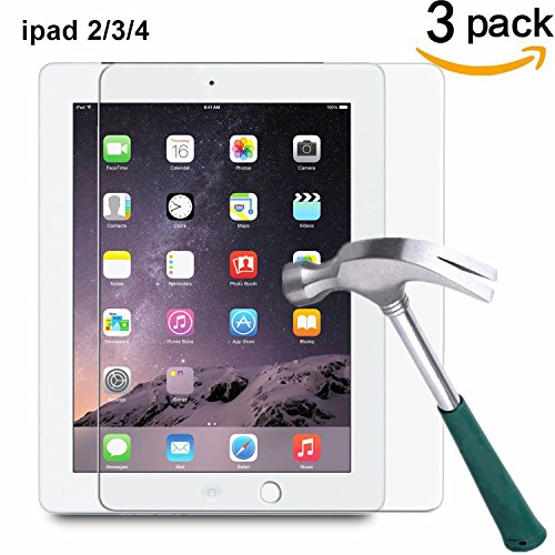 TANTEK HD-Clear, Anti-Scratch, Anti-Glare, Anti-Fingerprint, Tempered Glass Screen Protector for Apple iPad 2/iPad 3/iPad 4 - 3 Piece