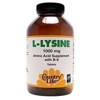-. Title : COUNTRY LIFE VITAMINS L-LYSINE 1000MG W/B-6, 100 TAB