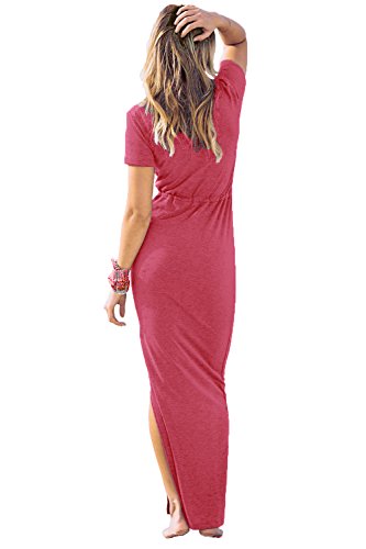 Oyanus Womens Sexy V Neck Side Split Drawstring Slim Fit Bodycon Beach Midi Dress