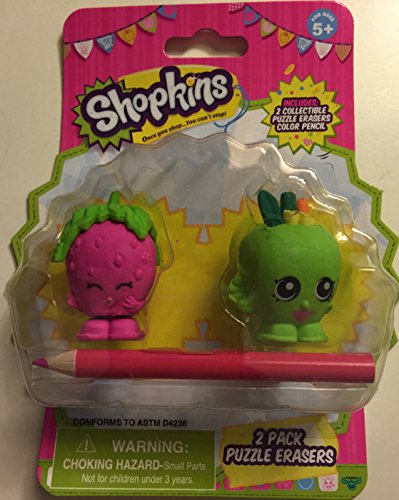 SHOPKINS 2 COLLECTIBLE PUZZLE ERASERS & COLOR PENCIL