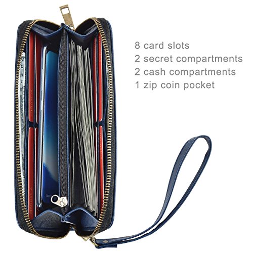 - Spacious Structure: 8 credit card slots, 2 cash storage pockets, 2 secret compartment,1 zip coin pocket, big enough to hold the cash, smart phone, coins, receipt, credit card, ID card, metro card, etc;