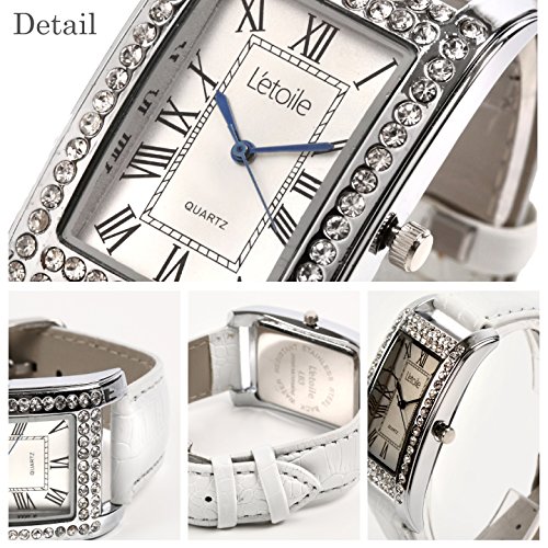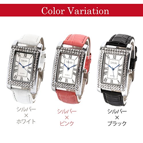 -. Title : L'etoile レトワール LB3 ラインストーンを散りばめたレクタンギュラーケースにローマ数字インデックスが上品さを生む 3色展開 レディース 腕時計