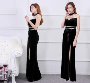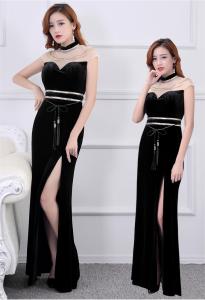 シースルー イブニングドレス スリット 光沢感 セクシー ウエストリボン マキシ丈ドレス ロング ナイトパーティー