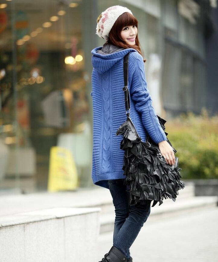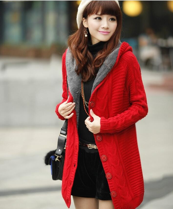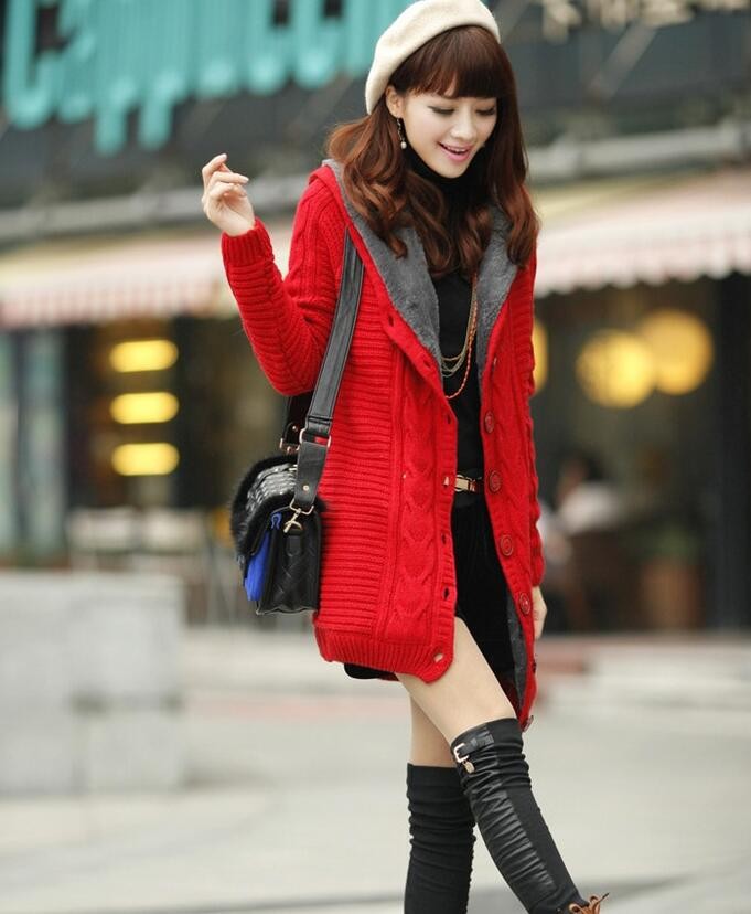 メイン素材:ポリエステルサイズ:フリー 着丈70cm バスト100cm 袖長60cmカラー:レッド/ホワイト/ブルー/ブラウン/グリーン さらに袖の部分はファーがないからこわばらない仕上がりになっているのがポイント裏地にもこもこのボアがついたロングカーディガン 厚みあるニット 裏地は毛足が長い起毛今期の絶対使えるマストアイテム!ファーフード付きニットコートが5カラーで登場