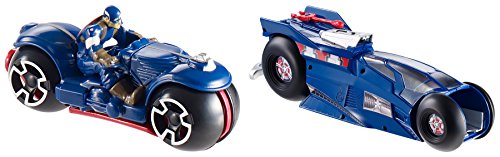 -. Binding : Toy -. Brand : Hot Wheels -. EAN : 0072125464036 -. Feature : Large-scale Moto launcher with projectile / Includes a smaller matching Moto with a non-removable rider / Use the large Moto launcher to shoot the included projectile or launch the smaller Moto / Makes a great gift for Marvel fans of all ages! / Collect them all! Each sold separately -. IsAdultProduct : 0 -. Label : Mattel -. Manufacturer : Mattel -. Model : DJH62 -. MPN : DJH62 -. PackageQuantity : 1 -. PartNumber : DJH62 -. ProductGroup : Toy -. ProductTypeName : TOYS_AND_GAMES -. Publisher : Mattel -. ReleaseDate : 2015-11-01 -. Studio : Mattel -. Title : Hot Wheels Marvel Massive Moto Launcher Captain America Playset -. UPC : 887961225372 -. Warranty : 1 year warranty against manufacturer defects