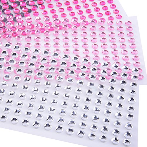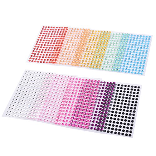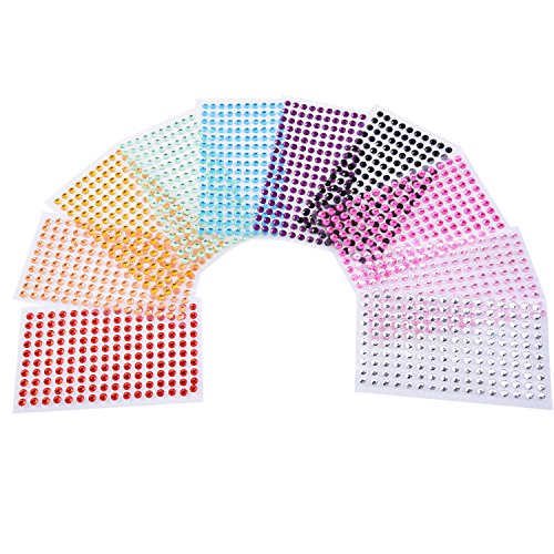 eBoot Rhinestone Sticker Crystal Diamond Sticker Round Self Adhesive Gem, 5 mm Diameter, 10 Colors, 1600 Pieces