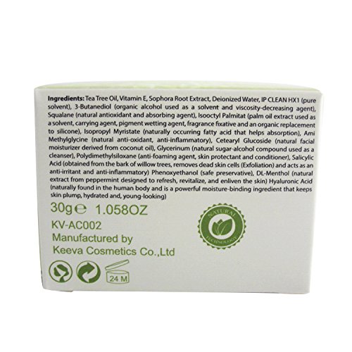 -. Binding : Health and Beauty -. Brand : Keeva -. EAN : 6934919129511 -. Feature : SECRET TEA TREE OIL ACNE FIGHTING FORMULA: Keeva Tea Tree Oil for acne is derived from the highest quality tea tree oil on the market and mixed perfectly with other natural ingredients for the ultimate acne killing cream you'll ever try. Tea tree oil is the little known secret that cures acne better than anything else on the market. Seriously. / DESTROYS ACNE & SKIN BLEMISHES WITHIN WEEKS: Apply Keeva directly to your pimples and acne spots for an effective and natural acne treatment. Tea Tree Oil contains natural antibacterial properties which make it an excellent alternative to harsh synthetic chemicals. Just a tiny amount of the oil within the cream will penetrate the skin to unblock the sebaceous glands, disinfect pores and dry out whiteheads, blackheads, pimples and other blemishes. / KEEVA WORKS BETTER THAN OTHER PRODUCTS: Thanks to its high potency and purity, Keeva provides a unique combination of antibacterial and anti-inflammatory properties. These disinfecting and soothing properties, unlike other acne treatments, will not strip the skin of its natural oils and cause further damage. Used regularly, Keeva will quickly and safely diminish and eliminate stubborn pimples, persistent zits, unsightly blemishes, and more! / YOUR ACNE GONE OR FULL REFUND: If you can't honestly state that this product isn't the most effective acne medication you've ever used, we'll give you a full refund within 30 days. No B.S. / NO ANIMAL TESTING: We don't use dangerous chemicals or do any animal testing. Keeva Organics prides itself on producing products that actually work. Time to get serious. Place Your Order Now! -. Label : Keeva -. Manufacturer : Keeva -. MPN : 51 -. PackageQuantity : 1 -. PartNumber : 51 -. ProductGroup : Beauty -. ProductTypeName : BEAUTY -. Publisher : Keeva -. Studio : Keeva -. Title : Keeva Tea Tree Oil Acne Treatment Cream, 30gm