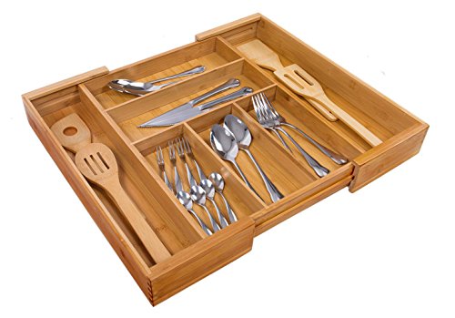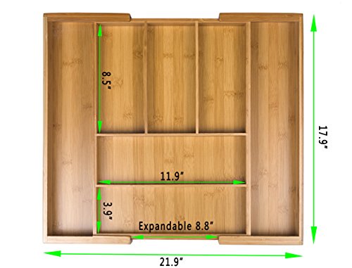 - EXPANDABLE CUTLERY TRAY:This utensil holder can adjustable for customizable 7 compartments ,measuring 22 inches wide;when closed,turning to be 5 compartments,measuring 13inches.