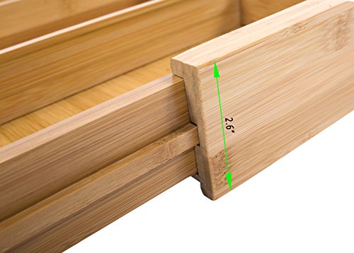 - SUPPLYING VERSATILE & FUNCTIONAL:bamboo trays can use anywhere in your drawer or on a desk,such as for for kitchen utensils, also great as cosmetic divider, hardware tray and jewelry organizer, etc. fit most standard size drawers.