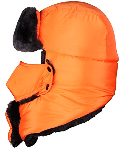 -. Feature : Warm and Comfortable - The winter bomber hats has a flip down collar that protects your neck at the same time as it covers your ears and goes down and buckles under your chin.The face mask can be placed over your nose, mouth and chin. You can also pull it down past your nose if you want to breathe easily.Part of the neck protection can replace the scarf,Winter travel only need a hat. / Great Function - The furry winter hats inner lining makes it soft and comfortable,plus the face mask is a great added feature to keep you safe from wind burn. The face mask connects to the hat either by the button snaps on either side of the hat or by using connecting the loop at the end of each side around your ears.Face mask can be used independently. / Also the Faux Fur - super soft and comfortable, great stuff, so comfortable but so washable too. The fur bomber hats has a wind and water-resistant nylon shell to keep you warm and dry. The fabric is incredibly soft. All seams are well sewn and construction is quite sturdy. / Great for Cold Winter Activities - This camo fur hat is soft, warm & toasty. It goes on easily and is very comfortable on your head and ears. You can still hear sounds quite well.A wonderful fur trapper hat for wearing while skiing, snowboarding, skating, sledding, snowshoeing, camping, hiking or any outdoor sports and activities. Pair off with your favorite winter Outfit. / 30 Days Free Exchange and Returns Policy - 100% satisfaction guaranteed. If for any reason you are unhappy with any product by us,please do not hesitate to contact us. We will take full ownership and responsibility for the quality of our products and will do our very best to solve your problem swiftly and efficiently!