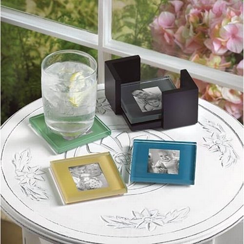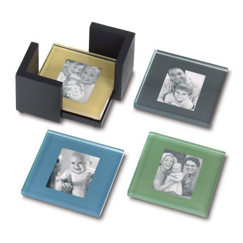 Sarah Peyton Multi-Color Glass Photo Coasters, with Storage Rack