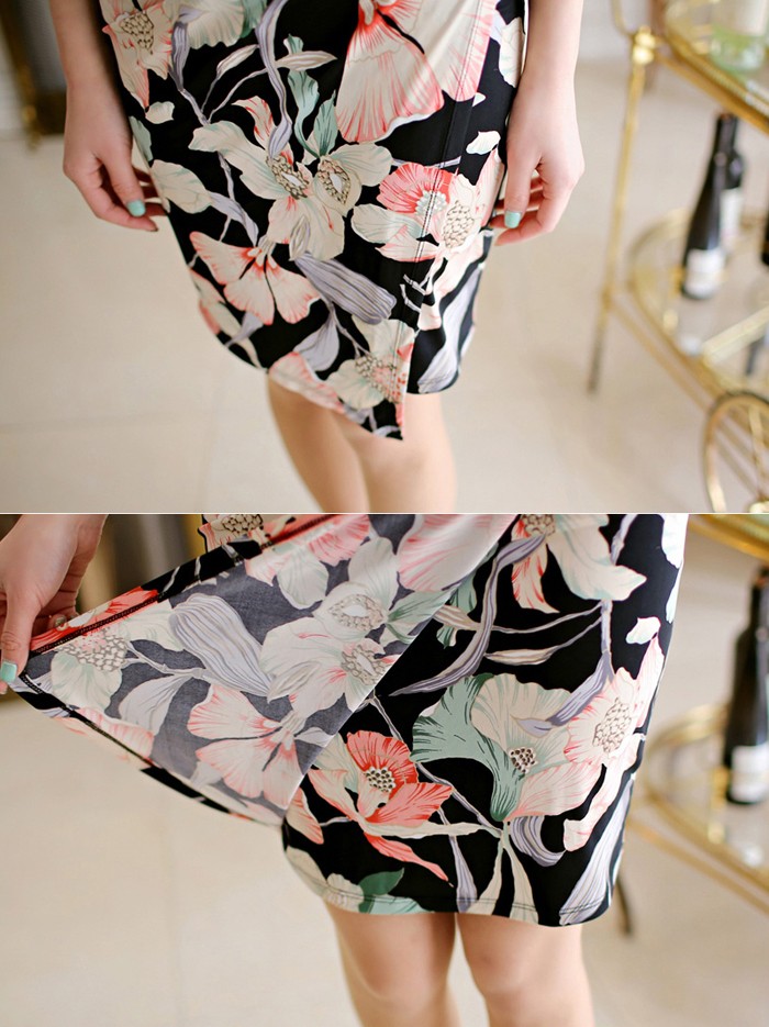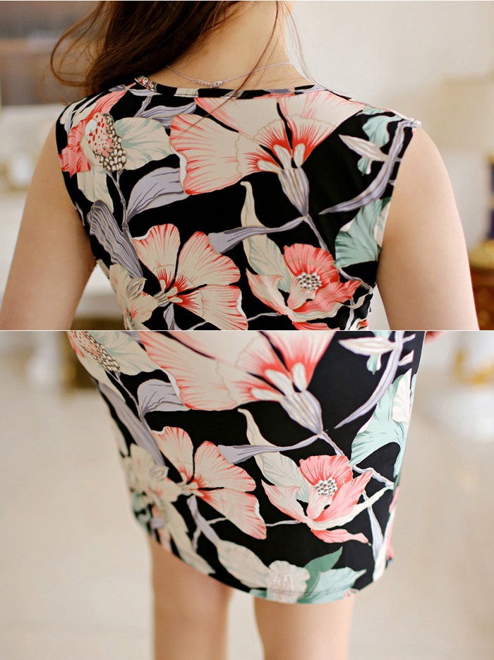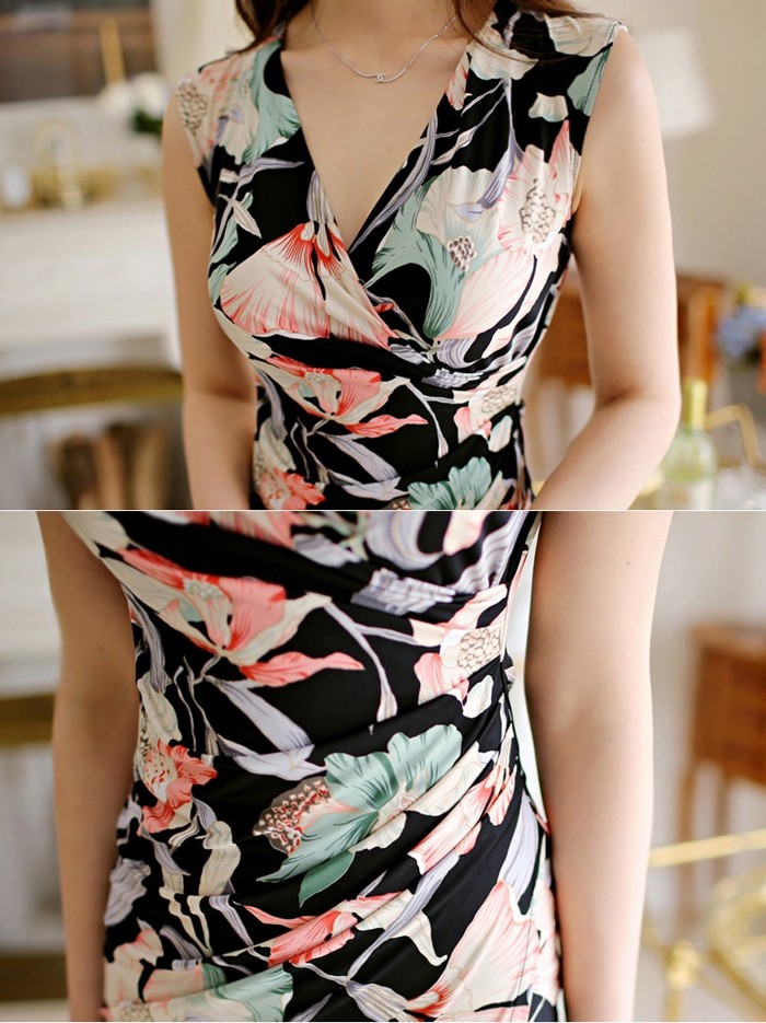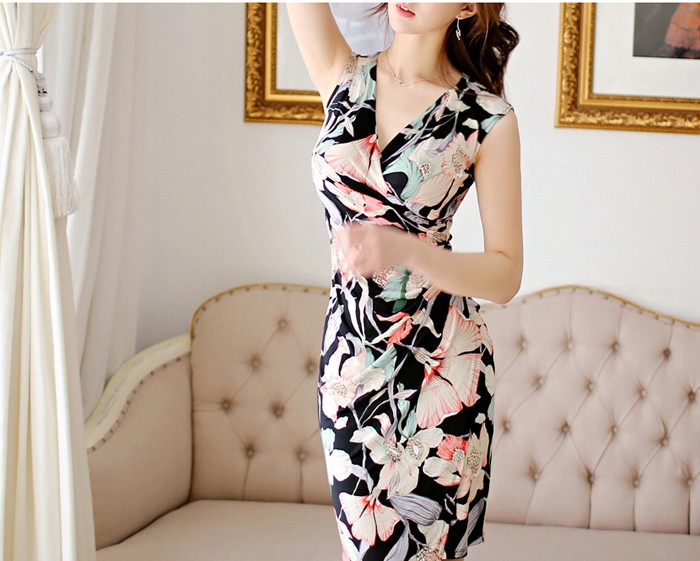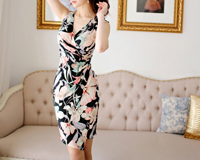 商品名:カシュクールワンピース ノースリーブ 花柄 フラワー ボタニカル セクシー