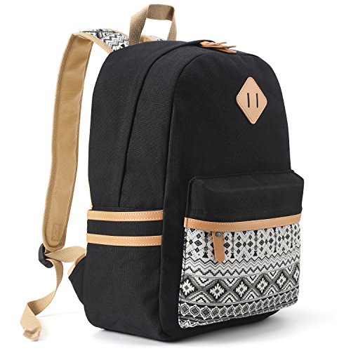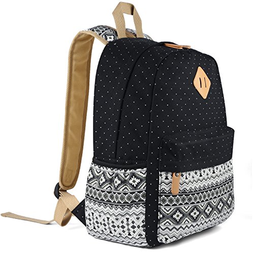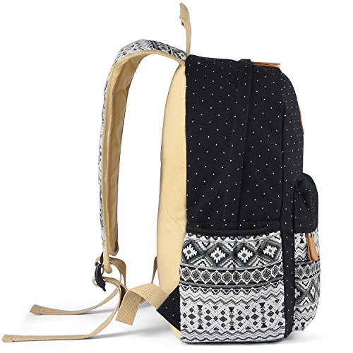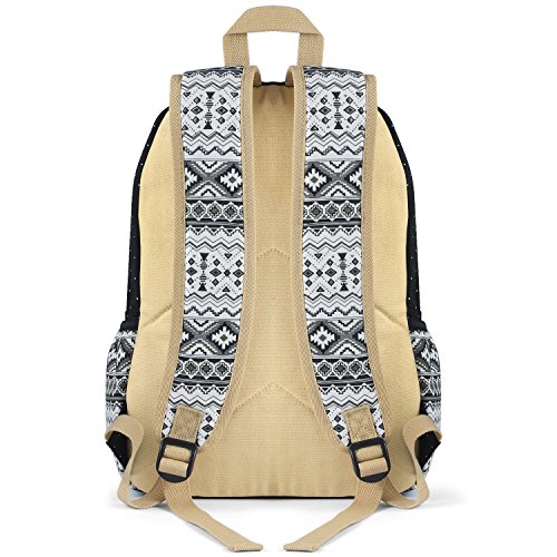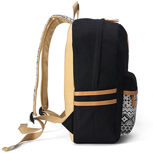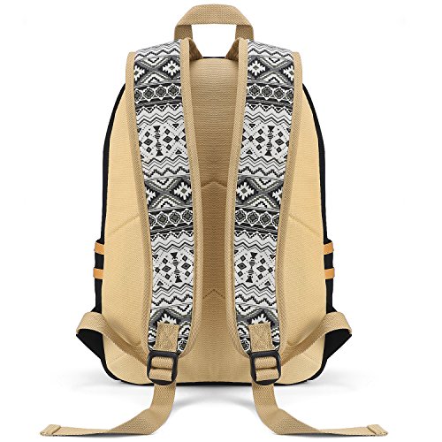 -. Feature : This trendy school backpack is made of high density cotton canvas with designer bohemian pattern. Its padded shoulder straps are adjustable and comfortable, which can well protect your shoulder when carrying something heavy / Multiple pockets design make your stuffs lay in the bag systematically. Compartments: 2*side open pockets, 1*front zipper pockets, 1*main compartment, 1* laptop layer, 1*back inner wall zipper pocket and 2*inner open pockets / The two pockets on each side can be used to hold water bottle and umbrella. The exterior front pocket can be used to store keys, pens or some other small items / The main compartment designed with a laptop layer which can hold a laptop up to 15.7". Two way zipper pullers, which are smooth and convenient to pull when opening / This school bag is durable enough to hold a lot of books, which is suitable for both girls and boys on school