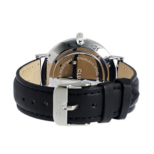 -. Feature : クルース CLUSE / 仕様 クオーツ、3気圧防水、カラー:ブラック(文字盤)、シルバー(ケース)、ブラック(ベルト) / 素材 ステンレス(ケース)、本革(ベルト) / サイズ (約)H38×W38×D7mm(ラグ、リューズは除く)、重さ(約)36g、腕周り最大(約)17.5cm、最小(約)14cm / 付属品 専用袋・保証書・取扱説明書