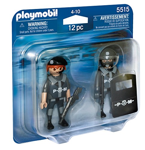 -. Feature : Save the day with this skilled Police Team / Set includes two figures, hat, helmet, police shield, and other accessories / Play with this set alone or combine it with other PLAYMOBIL sets / Encourages children to explore and learn while having fun / Figures can bend, sit, stand and turn their heads