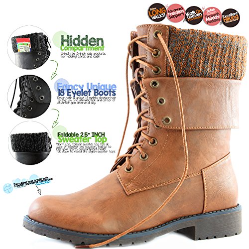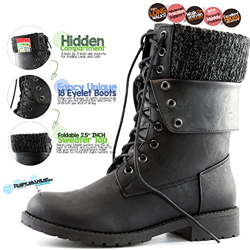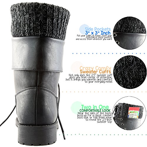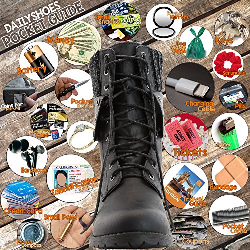 -. Binding : Apparel -. Brand : DailyShoes -. Department : womens -. Feature : • STAY WARM IN EVERY SEASON Tops of the boots are made out of neoprene, the same material wet suits are constructed out of! It's an excellent insulator on cold days but still cool on warm ones. / • 2 LOOKS IN ONE Wear the sides of the boots laced up for a classic combat boot look or fold them down to reveal the 2.5-inch sweater top. • KEEP YOUR ESSENTIALS SAFE Boots feature 3-inch by 3-inch side pockets for holding cards and cash / • COMFORTABLE FIT FOR ALL WOMEN Boot opening is 10 inches in circumference. • JUST THE RIGHT HEIGHT Boots are 9.5 inches tall to cover the lower calf. • PREMIUM MATERIALS Fashioned out of premium vegan leather and a slip-resistant synthetic rubber sole / • 2 LOOKS IN ONE: The DailyShoes Natalie 99 Pocket Ankle Boot with Sweater Top can be worn two different ways. Lace them up the whole way and get the look of a combat boot that will add a rocker chic finishing touch to your outfits. Fold down the tops to reveal a 2.5-inch wide sweater top for a softer look. / **CLEVER POCKET BOOTS. With the DailyShoes Natalie 99 Pocket Ankle Boot with Sweater Top, you never have to resort to stuffing items into your socks to avoid carrying a purse. That's because these boots feature convenient side pockets that are 3 inches by 3 inches in size. You can fit cash, credit cards, your ID and other small items perfectly in the pockets and always have them within easy reach on the go. -. ProductGroup : Shoes -. ProductTypeName : SHOES -. Title : DailyShoes Womens Military Up Buckle Combat Boots Ankle Mid Calf Fold-Down Exclusive Credit Card Pocket