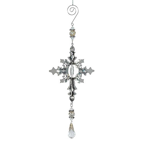 - Features an intricately detailed snowflake with jeweled dangle