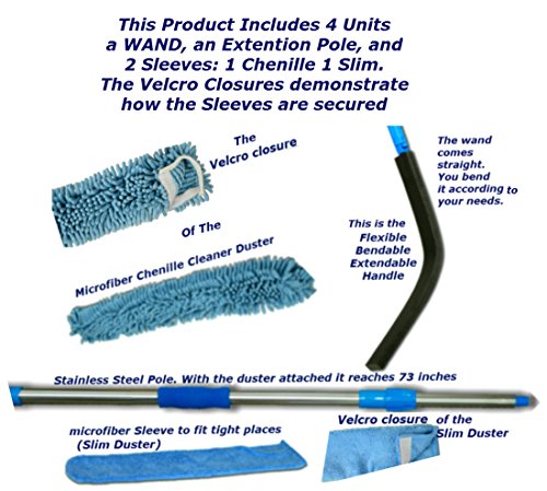 Studio : Everything Wedding and Beyond Publisher : Everything Wedding and Beyond Binding : Kitchen Product Description The split fiber technology microfibers this cleaning dusters is made of is, (80/20 blend of polyester and polyamide) penetrate surface pores to remove tiny dust particles and cob webs without the need for any chemicals. Both Dusters are nonabrasive, super absorbent, lint free, and unlike a feather duster will not shed feathers or fibers for that matter. They are Hypoallergenic and are very effective at removing pet hairs, dander, pollen, cobwebs and other allergens. The best part is that they can also be used wet for cleaning. This allows you to use all sides of the duster. The plush design of the Blue Chenille cover and the slim property of the light blue cover give an incredible capacity for dust, dirt and grime. Both dusters are MONEY SAVERs! Our Dusters are long lasting, and if cared for properly, will serve you for years. You do not need refills, replacement parts or using paper towels or other toss-able materials. Caring for the dusters is super easy. To clean either Duster, just shake vigorously, hand or machine wash and air dry or use the dryer on very low heat. The Slim Duster is perfect for cleaning blinds. When covering the wand, the dusters - cleaners bends easily so you can use them everywhere, from high ceilings and corners to the tight spaces under your furniture and between blind slots. When attached to the extension pole it reaches places even higher than 12 foot ceilings easily. The telescoping handle screws into the bendable cleaning wand making cleaning high places a breeze. Satisfaction guaranteed for any product offered and sold by Everything Wedding and Beyond! To assure you of a NO RISK purchase, we follow Amazon's no question asked return policy. Gift card and gift wrapping available here. Fulfilled by Amazon to assure on time delivery. Prime members enjoy FREE Shipping. 0