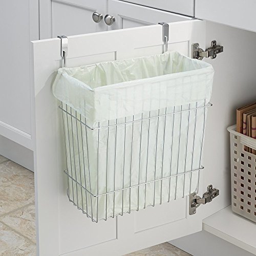 mDesign Over the Cabinet Wastebasket Trash Can or Storage Basket for Kitchen - Chrome