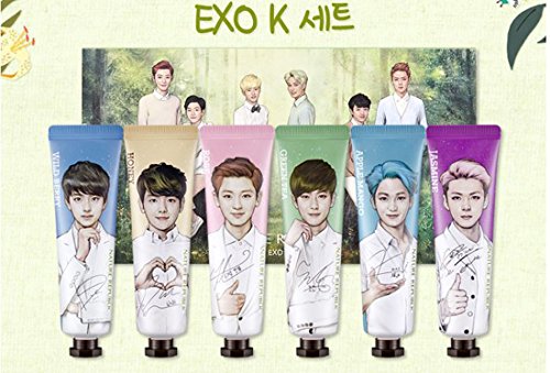 Feature : EXO autographed official handcreams 30mlx6 /Set , Brand new, Best before 2017,05 / EXO M : Lay - Shea Butter, TAO - Avocado, LUHAN - Cotton Baby / CHEN - Peach, XIUMIN - White Musk, KRIS - Cherry Blossom / EXO K : D.O - Wild Berry, BAEK HYUN - Honey, SE HUN - Jasmine / SUHO - Green Tea, KAI - Apple Mango,CHAN YEOL - Rose