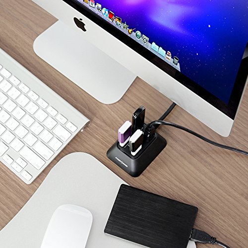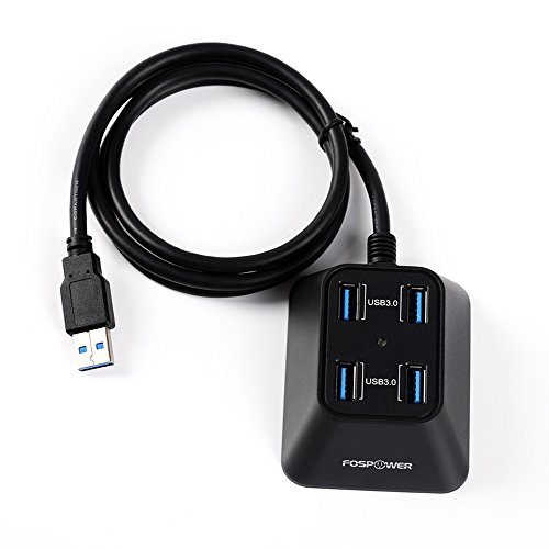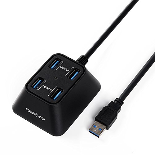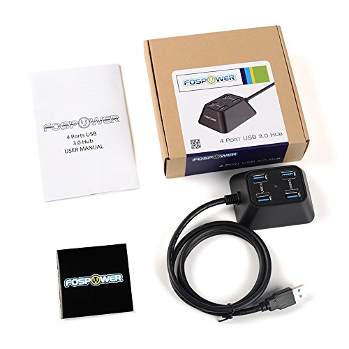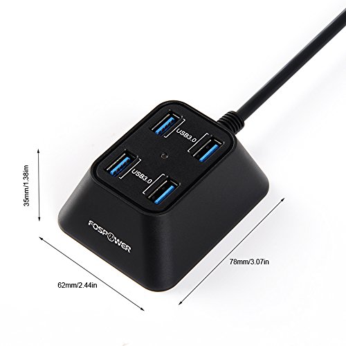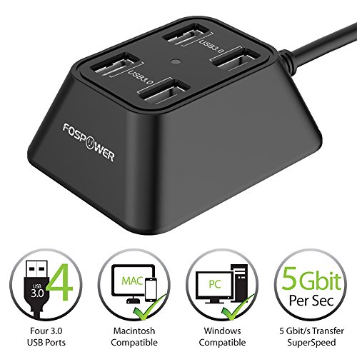 FosPower 4-Port SuperSpeed USB 3.0 HUB (Backwards Compatible) for Ultrabooks, PC Windows XP or later, Macbook, iMac, Mac OS X 10.6 or later - Black