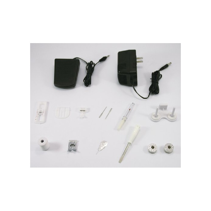 세트 내용:본체,AC어댑터,풋 스위치,버튼혈용 억제하고, 지퍼용 억제하고, seam re《파》,버튼 박음질용 플레이트,바늘×2,사참깨 세우고, 사참깨,억제하고, 실 통하고, 당구대를 한 바퀴 이상 돌아서 맞추는 기술,bobbin×2,취급 설명서