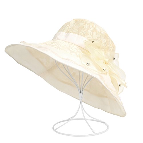 Binding : Apparel Product Description Head circumference: 56-60cm Good permeability: a unique mesh design Classic style, bright color, elegance Applications: beach, travel, shopping, tourism, banquets, weddings, etc. Category: large brimmed hat Applicable Gender: Female Applicable Age: Adult Material: lace,Chiffon Style: Lady Popular elements: Flowers 0