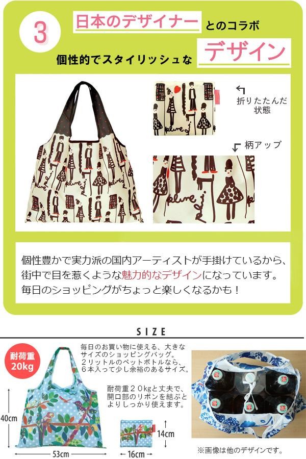 | 使わないときは折りたたんで収納できる、携帯に便利なショッピングエコバッグ。たっぷり容量で耐荷重はなんと20kg!!マチ付きにもでき、安定感も◎。日本のアーティストとコラボした個性豊かなデザインのDESIGNERS JAPANシリーズです♪ |