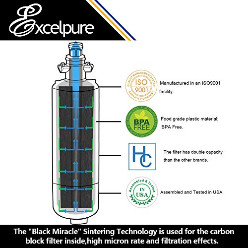Excelpure Refrigerator Water Filter Replacement Cartridge (3 PACK) Compatible with LG LT700P, ADQ36006101, ADQ36006102, Kenmore 469690, Water Sentinel WSL-3 and more