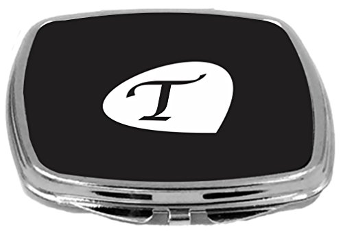 Rikki Knight Letter T Initial Petal Leaves Design Compact Mirror, Black, 17 Ounce