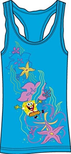 Nicklodeon Womens SpongBob Weed Up With Flowers Pajama Tank Top X-Large Aqua