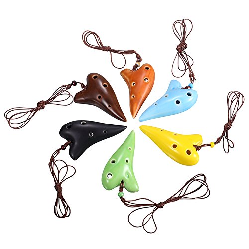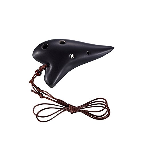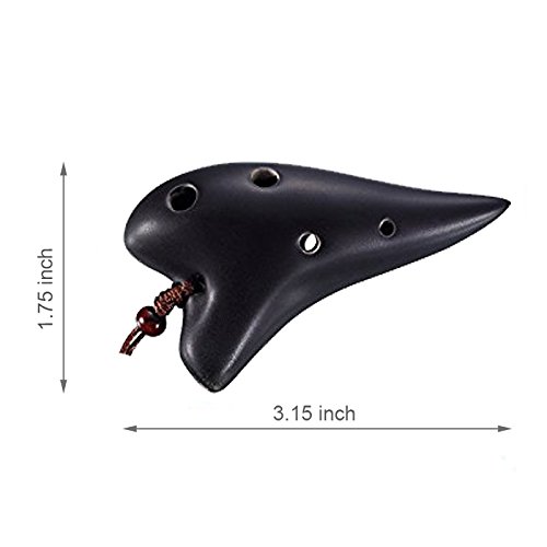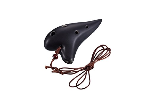 L'MS 6 Hole Ceramic Ocarina Soprano C Strawfire Finish Necklace Flute with Free Tutorial & Songbook (Black)