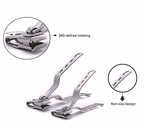 Binding : Kitchen Product Description Unique 360 Degree Rotating Head that makes cutting your nails easier by being able adjust the head instead of your hands to clip your nails from more natural and Comfortable angles. Package Includes: 1 x Large Nail Clipper (3.9 x 0.6 x 0.6 inches) 1 x Small Nail Clipper (3.1 x 0.4 x 0.5 inches) 1 x Nail File (3.3 x 0.5 inches) 0