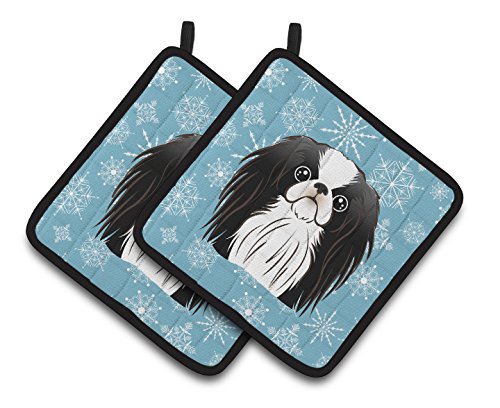 Caroline's Treasures Snowflake Japanese Chin Pair of Pot Holders BB1664PTHD, 7.5HX7.5W, Multicolor