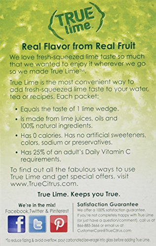 Made from a patented process that cold-presses and crystallizes citrus juices and oils, each convenient packet of True Citrus products deliver the light taste of a citrus wedge (Lemon, Lime, or Orange) in a go-with-you-anywhere packet. Great for offices, cafeterias and teachers' lounges. Enjoy fresh-squeezed lemon, lime or orange taste-anytime, anywhere! 100% all-natural. True Citrus is great in water, sparkling water, seltzer or hot/iced tea. Try adding to plain yogurt, sprinkle on vanilla ice cream or try in a cup of hot chocolate. 0 calories, 0g carbs 0g sugars and no artificial sweeteners, no preservatives, no sodium and no glutenFeature