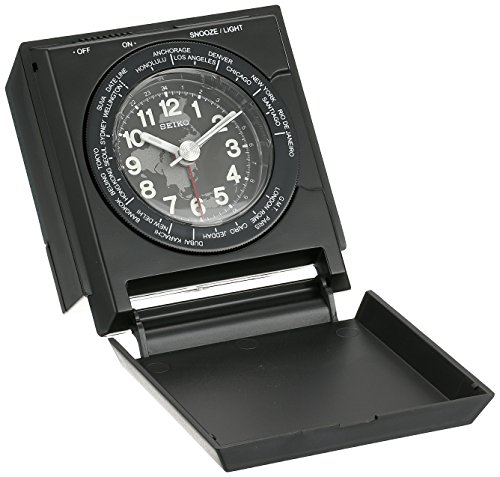 Whether you’re a traveler or need to keep track of multiple time zones, the Seiko Travel Alarm Clock is a must-have. Crafted of resin in your choice of finish, the clock features outer bezel markers that indicate the time in 20 different time zones. Additional features include 12- and 24-hour indices, a dial light, and a quiet-sweep second hand. The beep alarm also has a snooze function. One AA battery (not included) is required. About Seiko Over its 120-year history as a maker of fine timepieces, the Seiko name has become synonymous with cutting-edge technology, ultra-precision, constant innovation and refinement. Millions worldwide rely on Seiko wristwatches to keep them on schedule. Two generations have grown up thrilling to Olympic and World Cup competitions where victory or defeat is defined within a fraction of a second, all overseen by Seiko timekeepers. Seiko's far-reaching modern empire has its roots in a humble Tokyo clock repair shop opened by Kintaro Hattori in 1881, nearly a century before the introduction of its first landmark wristwatch. Today, Seiko continues to offer a wide array of clocks and movements for any home, including wall, alarm, desk, mantel, musical and heirloom quality decorative pieces. Beautiful on the outside, quality components on the inside, Seiko products will serve you for years to come. Dimensions: 3.25W x 1.5L x 3H in.. Resin case in your choice of finish. Markers for 20 different time zones. Beep alarm with snooze function. Requires 1 AA battery (not included).