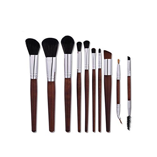 Kasla 10 Pieces Wooden Handle Face Eye Shadow Eyeliner FoundationPowder Makeup Brush Set