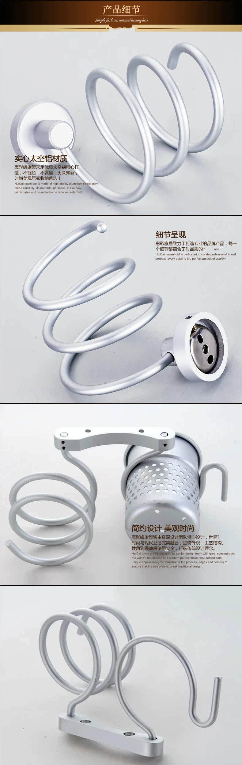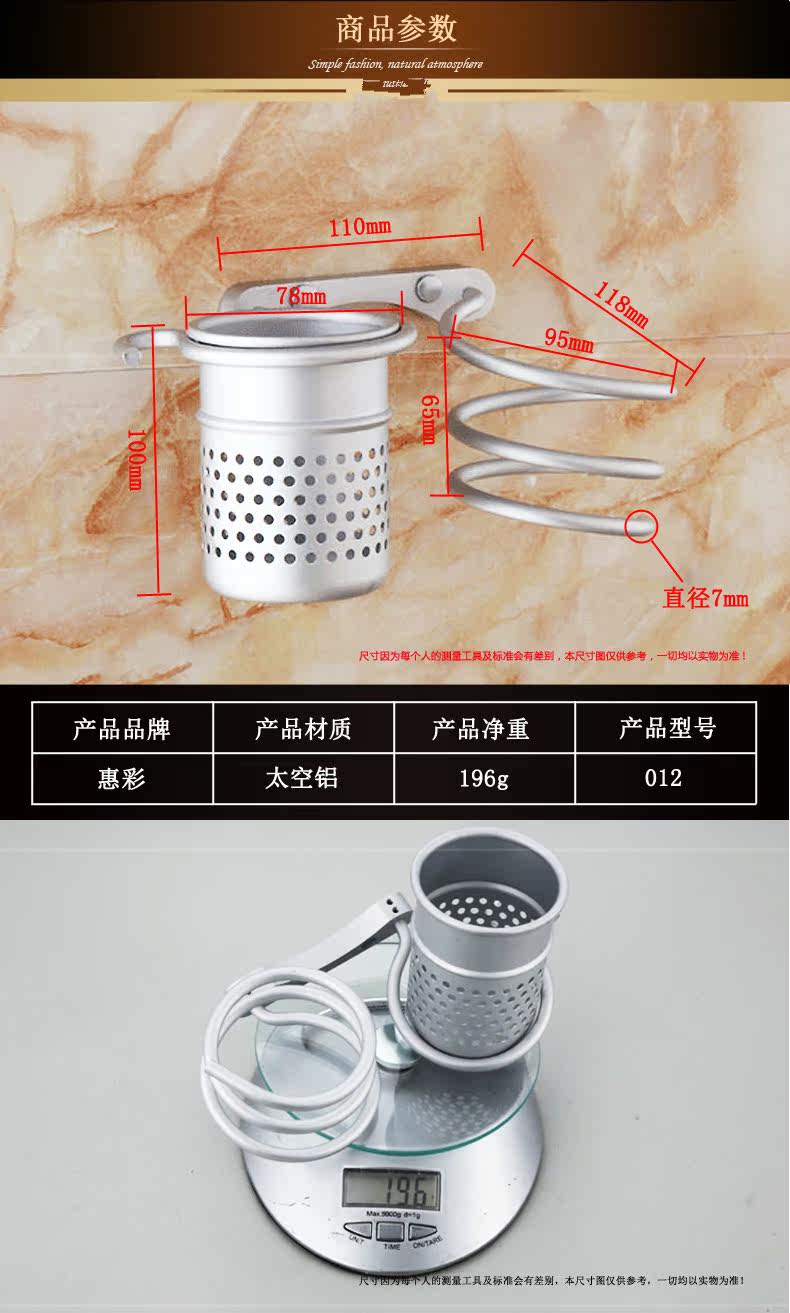 - 1PCu0026nbsp;Wall Hair Dryer Rack Space Aluminum Bathroom Wall Holder Shelf Storage